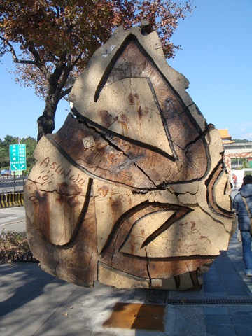 對於這樣巨型的木頭我就想起...這一定要用吊車...而且圖騰很容易壞掉~要非常得小心~