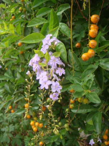路上見到可愛的紫色花朵~配上一小顆一小顆的橘色果子~好可愛喔!